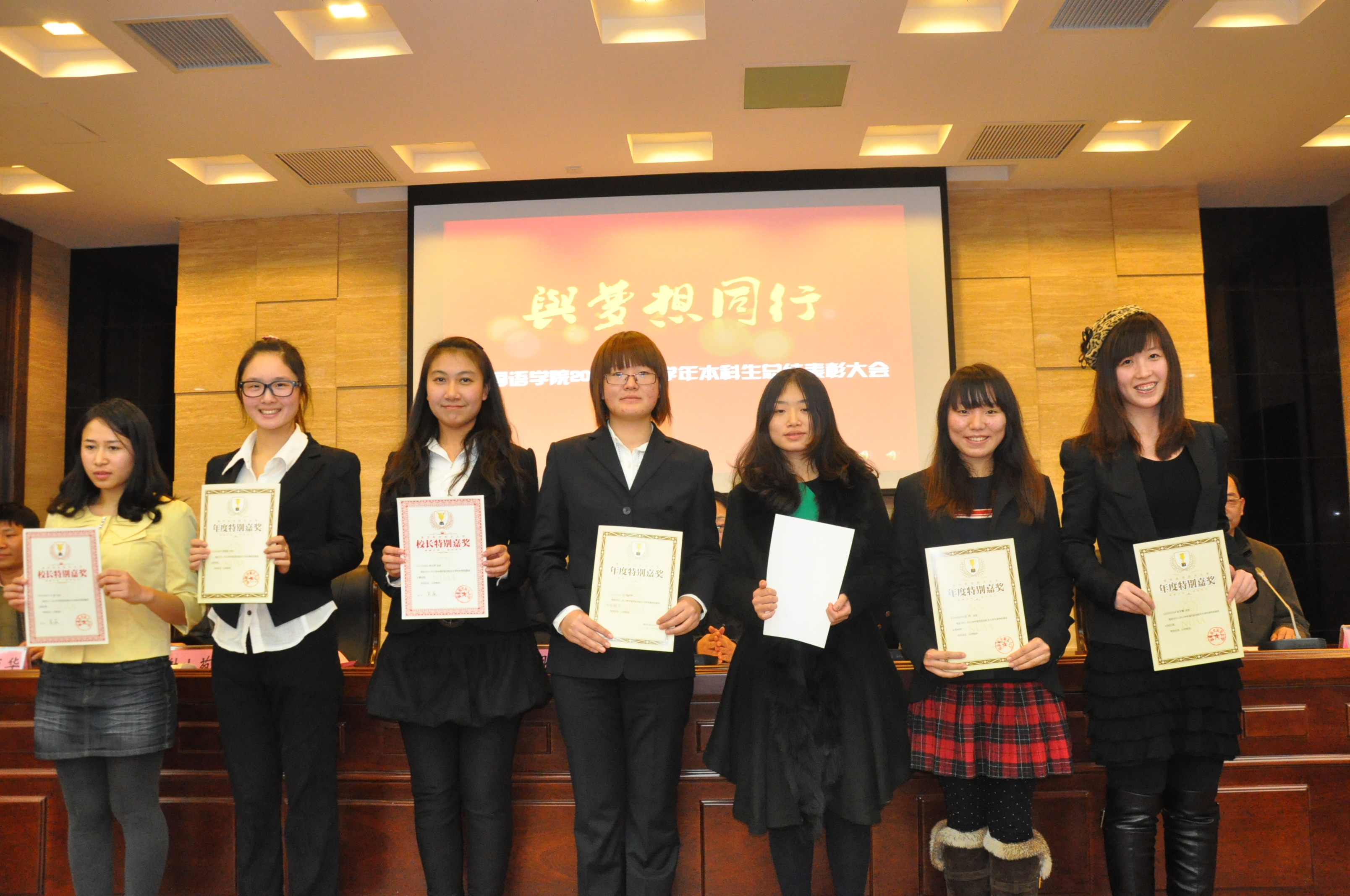 2011-2012学年,外院共有23人次获国家级荣誉奖项,65人次获得省级荣誉奖项,500余人次获得校级各类荣誉奖项。本次大会的召开,将更加激励外院学子锐意进取,朝着自己的梦想不断迈进。