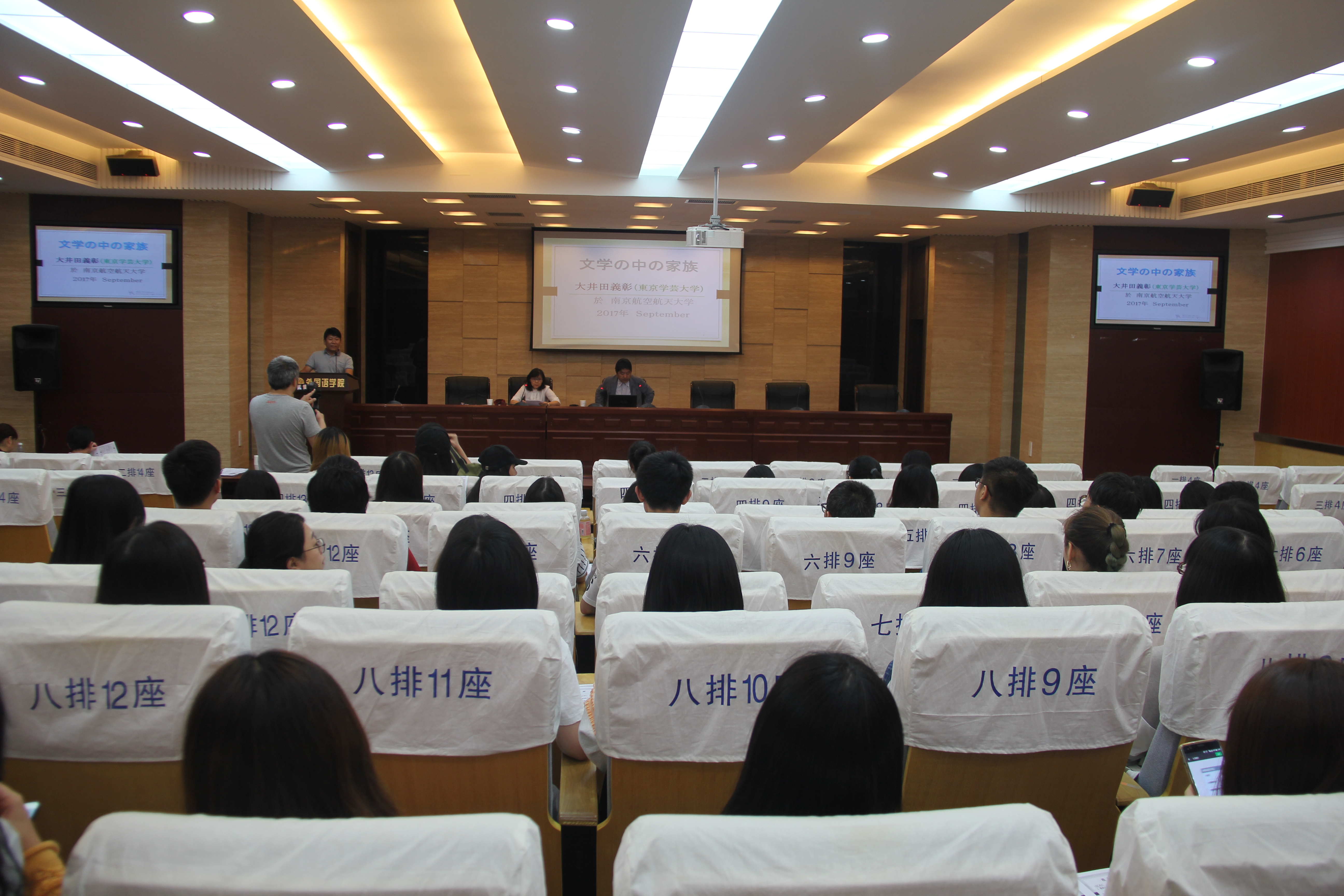 9月22日,东京学艺大学大井田義彰教授应邀在dg百家乐在线试玩平台 做了题为“文学中的家族”的精彩学术讲座。日语系主任窦硕华主持讲座。日语系张晋文副教授进行翻译,全系80余位师生聆听了讲座。