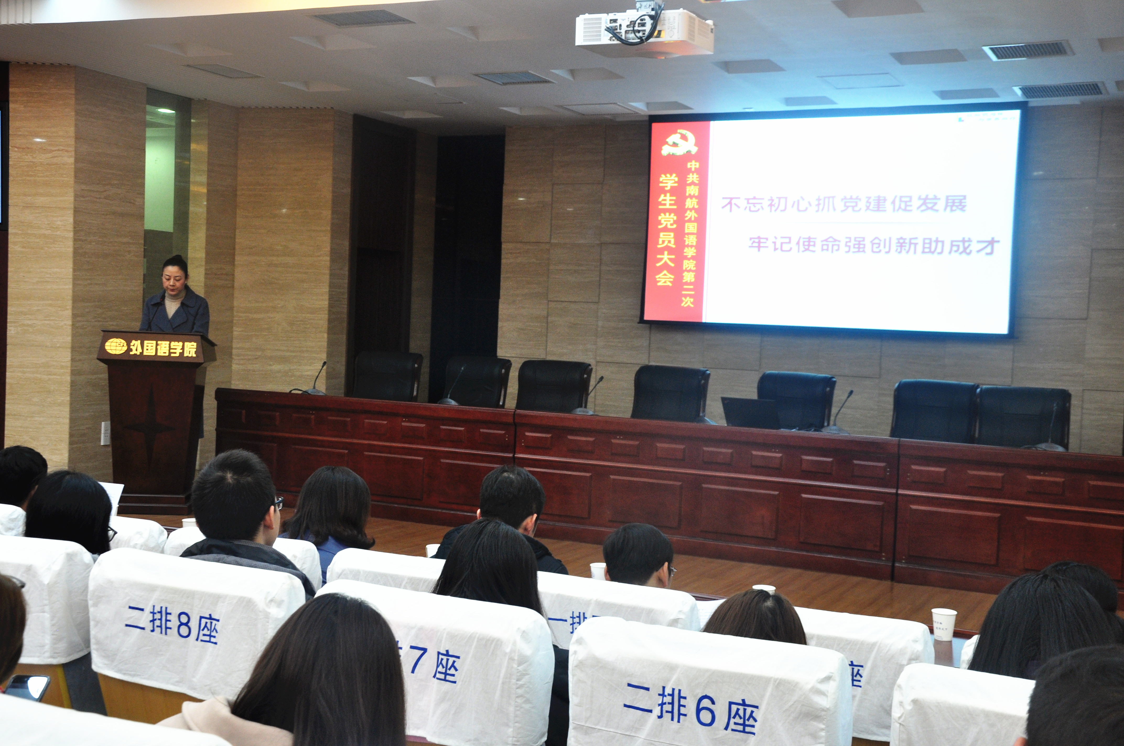 2017年12月22日中午,dg百家乐在线试玩平台 学生党总支第二次党员大会在将军路校区召开。校党委组织部正科级组织员王宁,院党委书记刘健荣、党委副书记梁薇,英语系、日语系负责人,各年级辅导员和全体学生党员参加了会议。大会由院团委书记杨一主持。