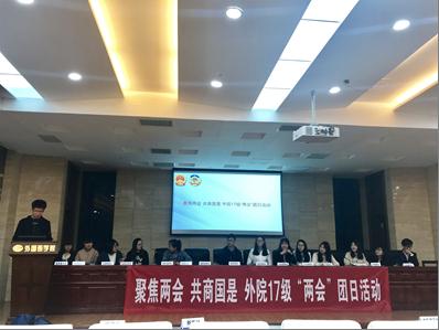 新的时代赋予中国发展新的机遇,如今,国家日益强盛,人民更加幸福。3月14日,在召开“两会”之际,dg百家乐在线试玩平台 17级团总支开展了“聚焦两会,共商国是”团日活动,通过模拟“两会”参政议政,帮助学生感受祖国繁荣富强的根本之源。