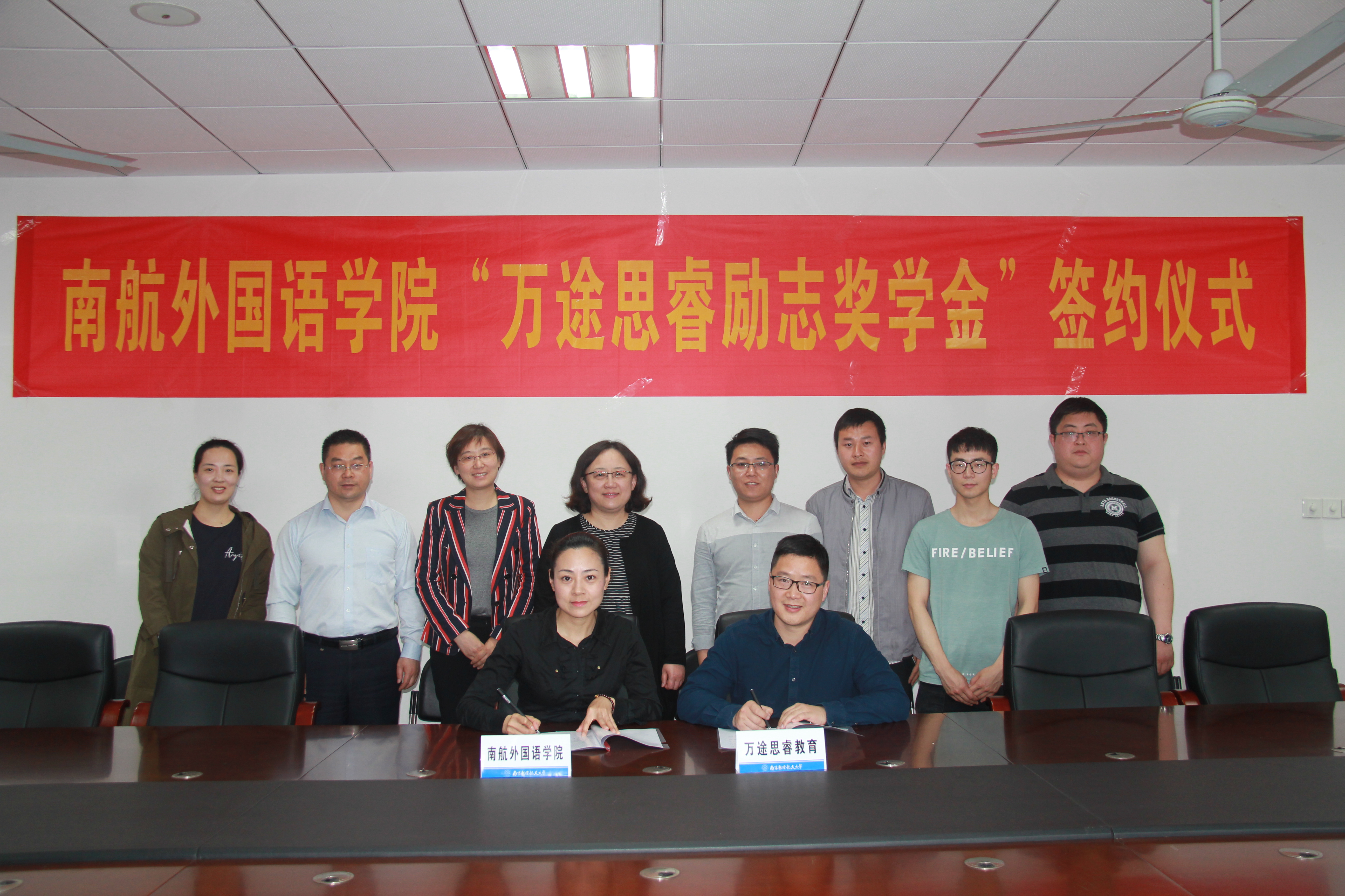 4月3日下午,dg百家乐在线试玩平台 “万途思睿励志奖学金”签约仪式在dg百家乐试玩 322会议室举行。南航校友、dg百家乐在线试玩平台 06届毕业生万途思睿教育校长丁亮、万途思睿教育分校负责人杜敏、陈功、徐正,dg百家乐在线试玩平台 党委书记刘健荣、副院长刘长江、党委副书记梁薇、校学生处资助管理中心主任雷蕾、dg百家乐在线试玩平台 团委书记杨一、本科生辅导员彭欢、本科生兼职辅导员张秋逸参加了此次签约仪式。