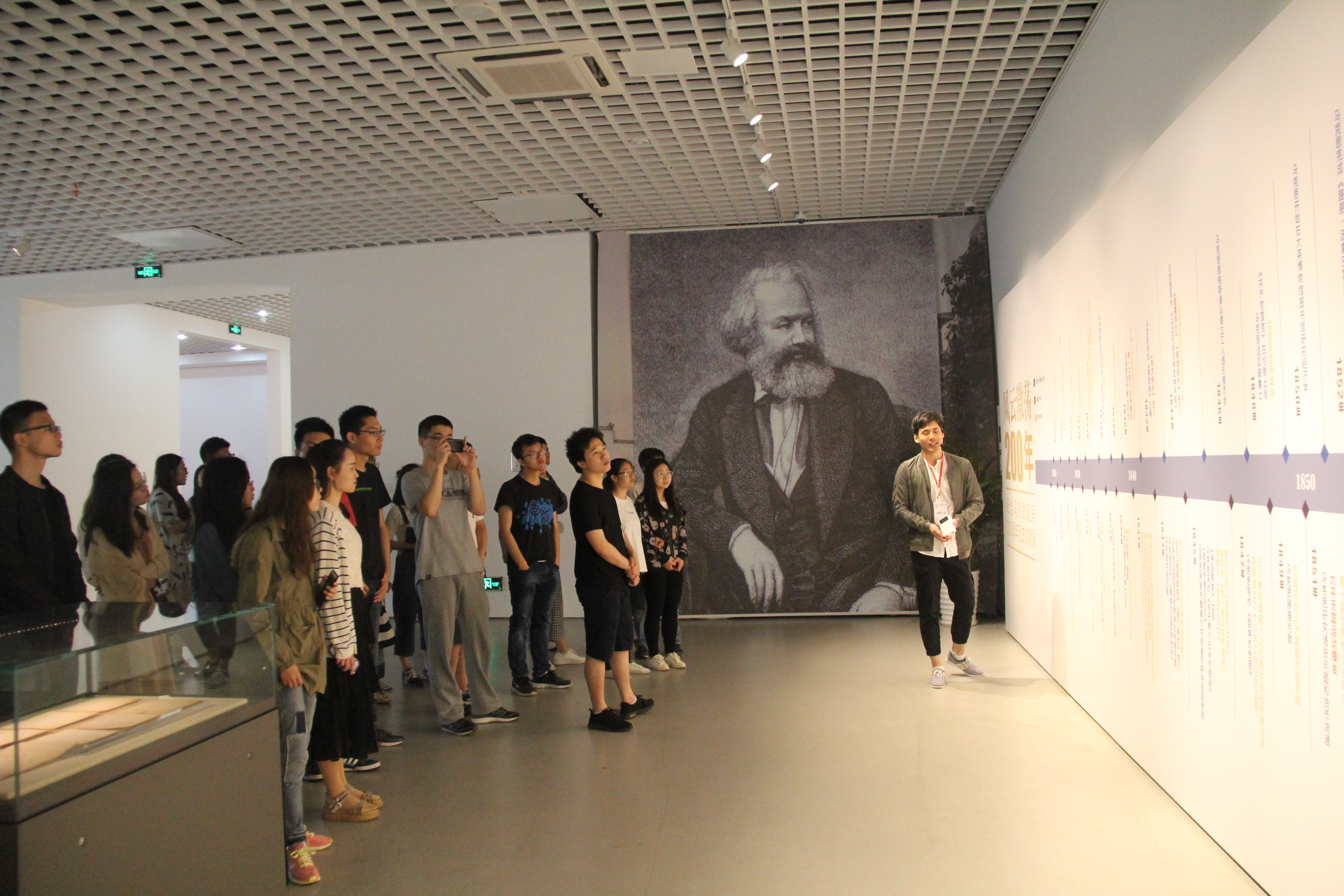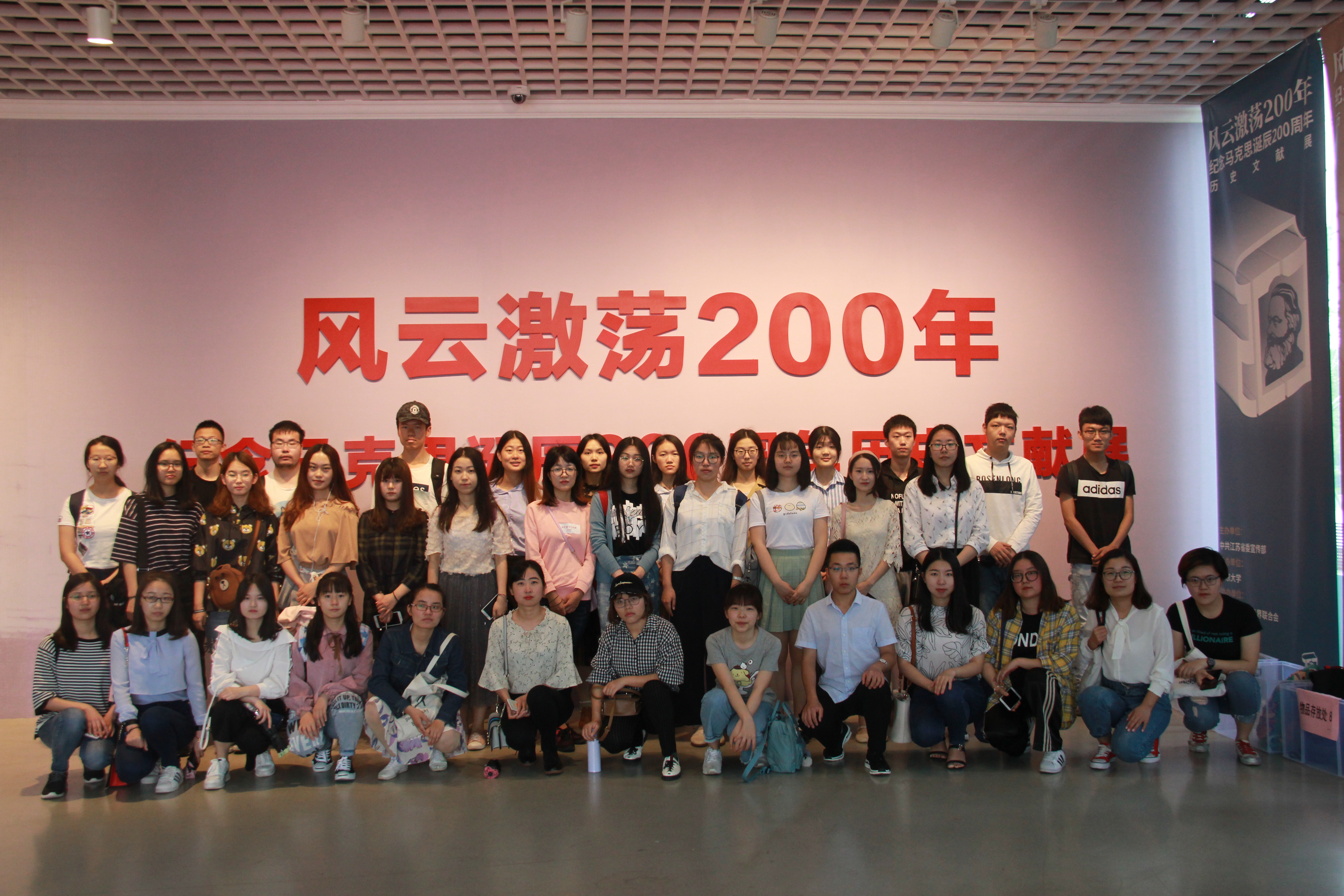 在马克思诞辰200周年之际,为激发学生党员的学习热情,丰富支部党日活动形式,dg百家乐在线试玩平台 本科生联合党支部、16级研究生党支部、17级研究生党支部于5月19日上午联合开展了“看风云激荡,耀思想光芒”主题教育活动,组织共36名学生党员前往南京大学仙林校区美术馆参观“马克思诞辰200周年纪念展”。