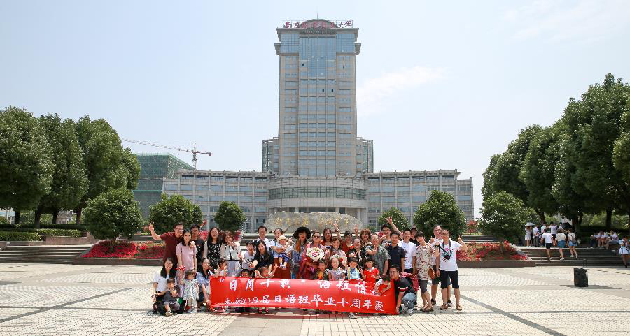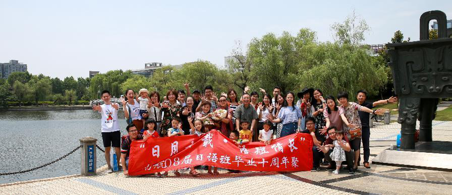 雏鸟振翅,十载高远。这群2004年9月份入学的日语系学子们在十年前的夏天分别,如今趁着假期带着家人孩子和彼此的挂念从各地赶来,回到了当初一起上课的教室里欢聚一堂,重温校园时光。
