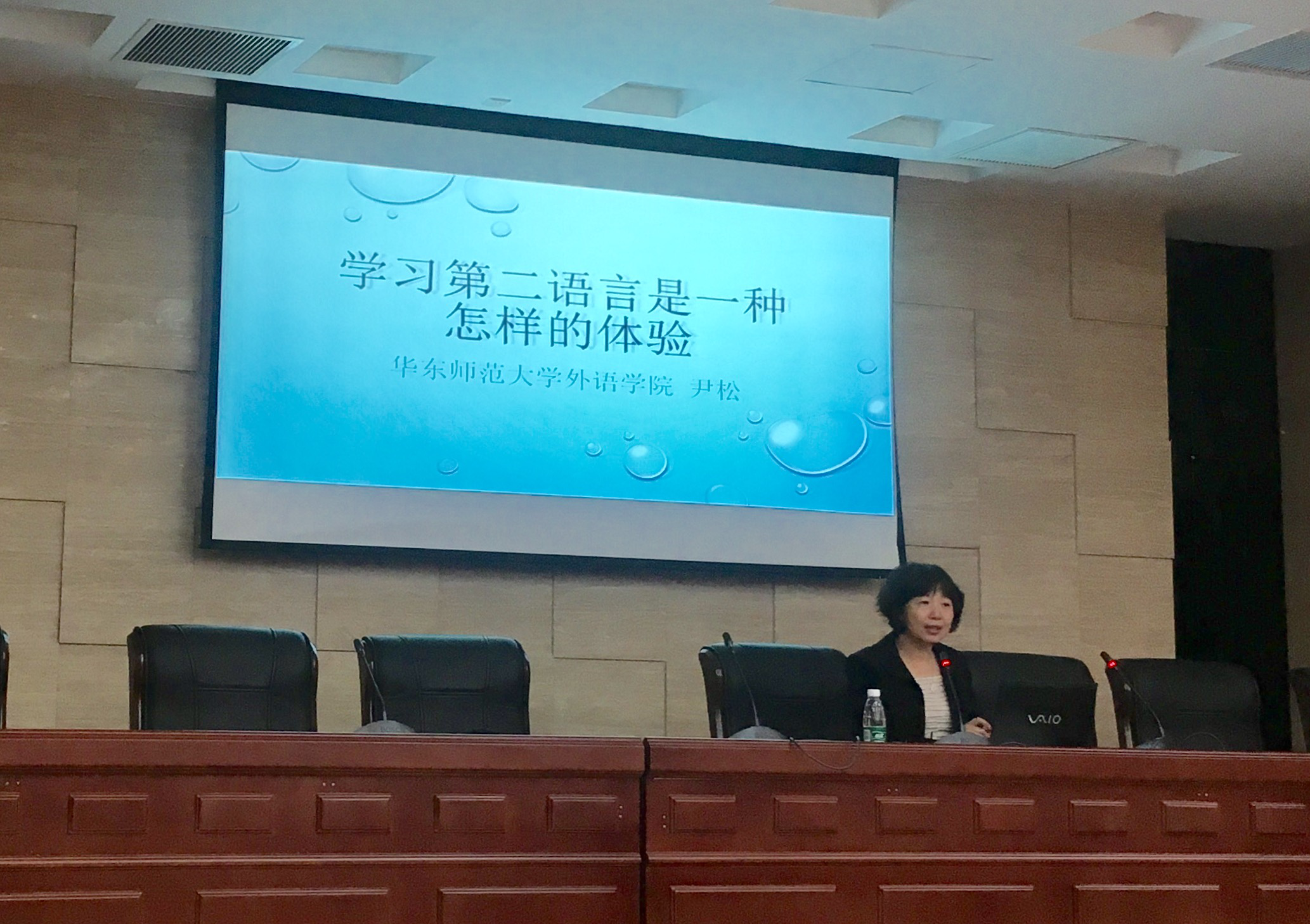 11月12日下午4时许,华东师范大学日语系主任、中国日语教学研究会日语教学专业分会秘书长、常务理事、上海外语口译证书考试日语专家组成员、《外语教学理论与实践》编辑尹松老师在dg百家乐在线试玩平台 国际会议中心举办了题为“第二语言学习是一种怎样的体验”的学术讲座。dg百家乐在线试玩平台 日语系主任窦硕华老师主持了本次讲座,dg百家乐试玩 日语系师生及部分英语专业学生参与了此次讲座的聆听。