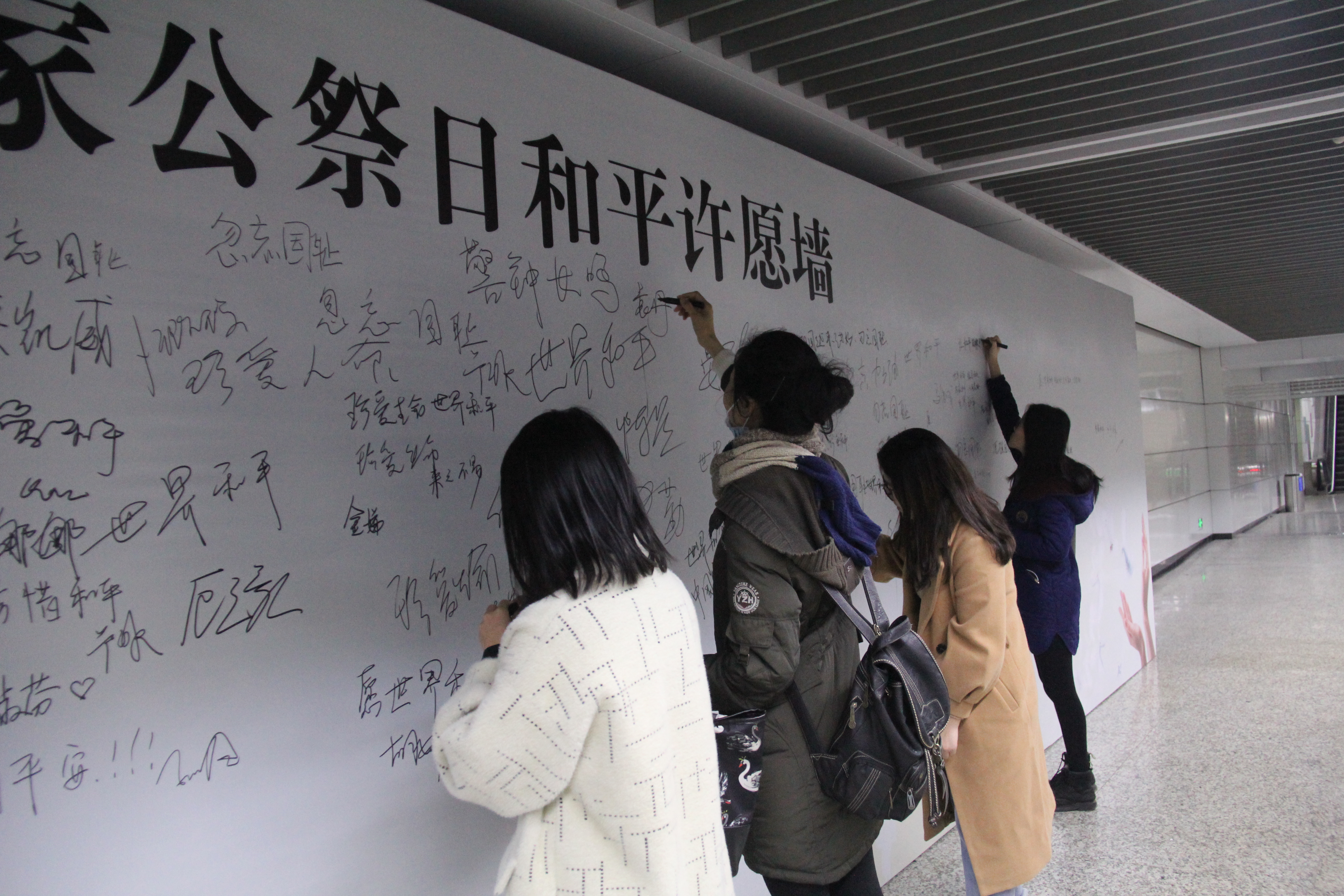 学生党支部的12位党员同学前往南京南站,参加南京大屠杀死难者国家公祭⽇“和平许愿墙”活动,悼念同胞,铭记历史,祈愿和平。 由市委宣传部等单位指导、东方卫报社主办的南京大屠杀死难者国家公祭⽇活动,在南京南站7号口的通道两侧,设立了两面“和平心愿地图”与“和平许愿墙”。来往的民众纷纷驻足,在地图上家乡位置进行许愿签名,并将家乡所在地与南京连线,寓意各地人民共同祈求和平,祝福中国。在另一侧60平方米大小的许愿墙上,写满了民众对于战争的谴责和强国的梦想,字里行间流露出的是对南京大屠杀遇难同胞的沉痛悼念与对未来的美好希冀。 dg百家乐在线试玩平台