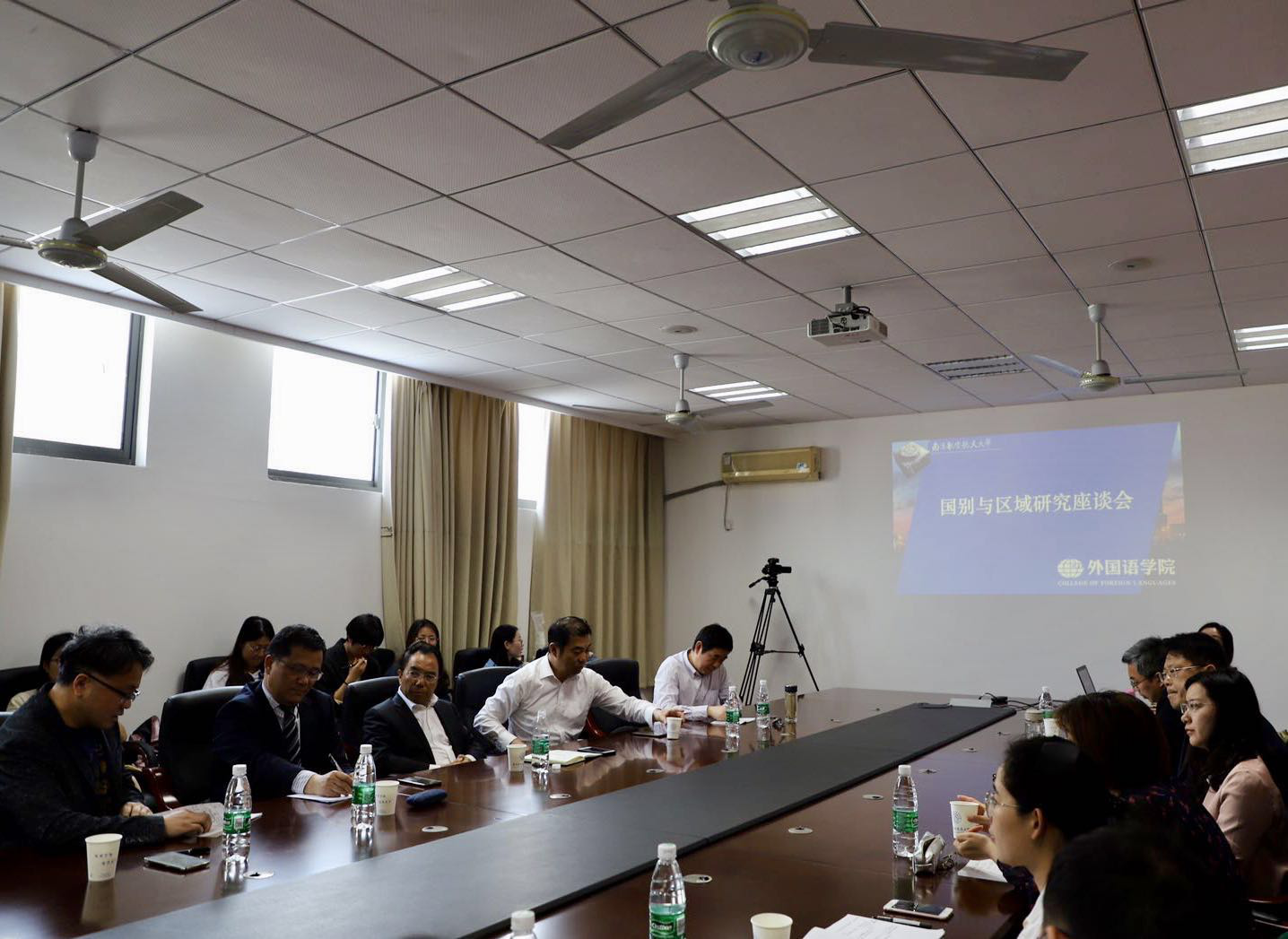 5月11日上午,dg百家乐在线试玩平台 邀请到外交部新闻司原司长、外交部前发言人、中国前驻联合国大使沈国放先生,来院开展“国别与区域研究”座谈,座谈会由dg百家乐在线试玩平台 院长范祥涛主持,副院长徐以中、专业老师代表、辅导员及学生代表参加了本次座谈会。