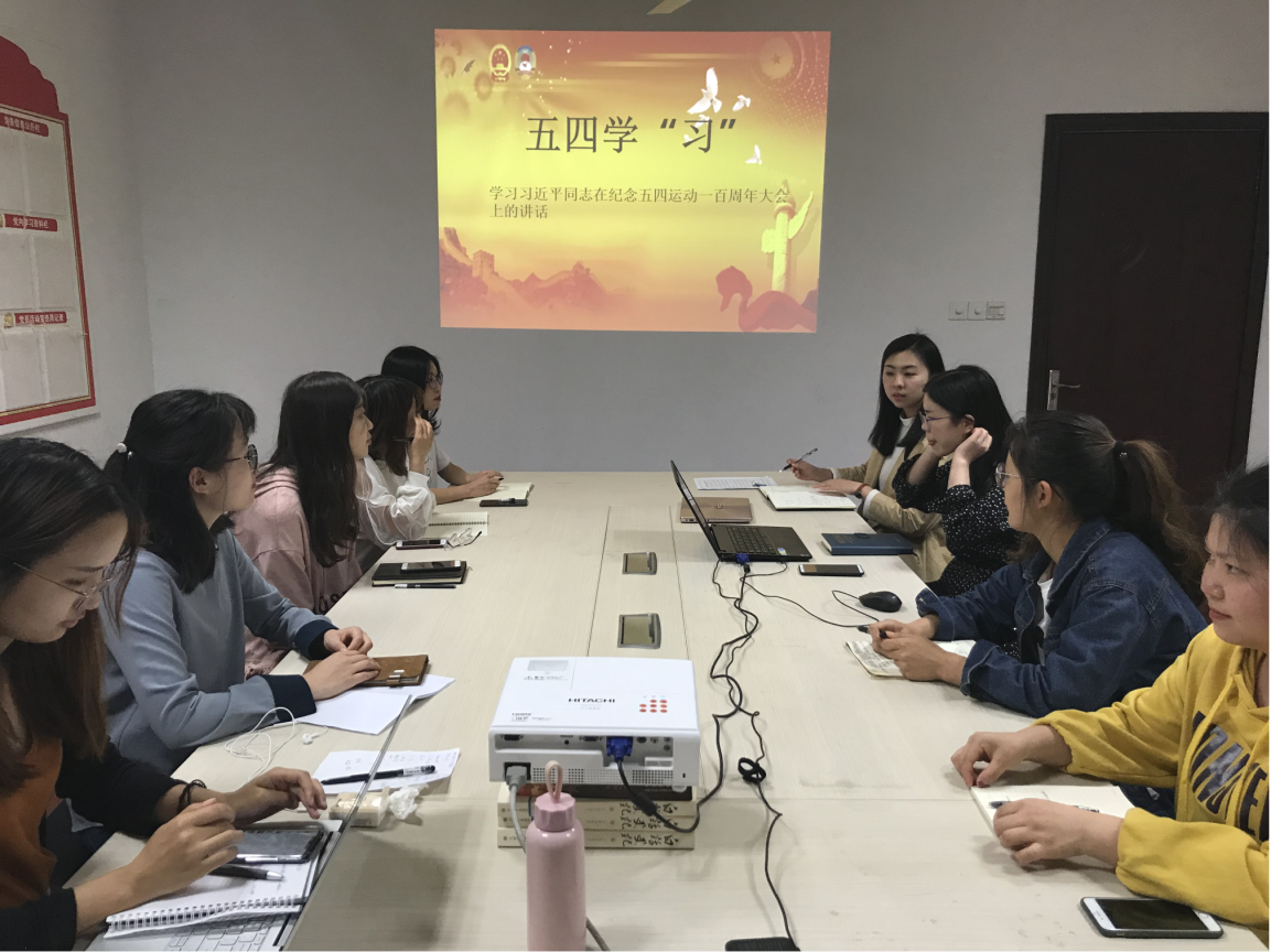 活动伊始,樊梦郡带领全体成员对习近平总书记在五四运动一百周年大会上的讲话进行了细致的学习,她表示青年学生应当牢记习总书记殷切的嘱托,肩负起时代的责任,将习总书记的寄语落实到学习生活中去。