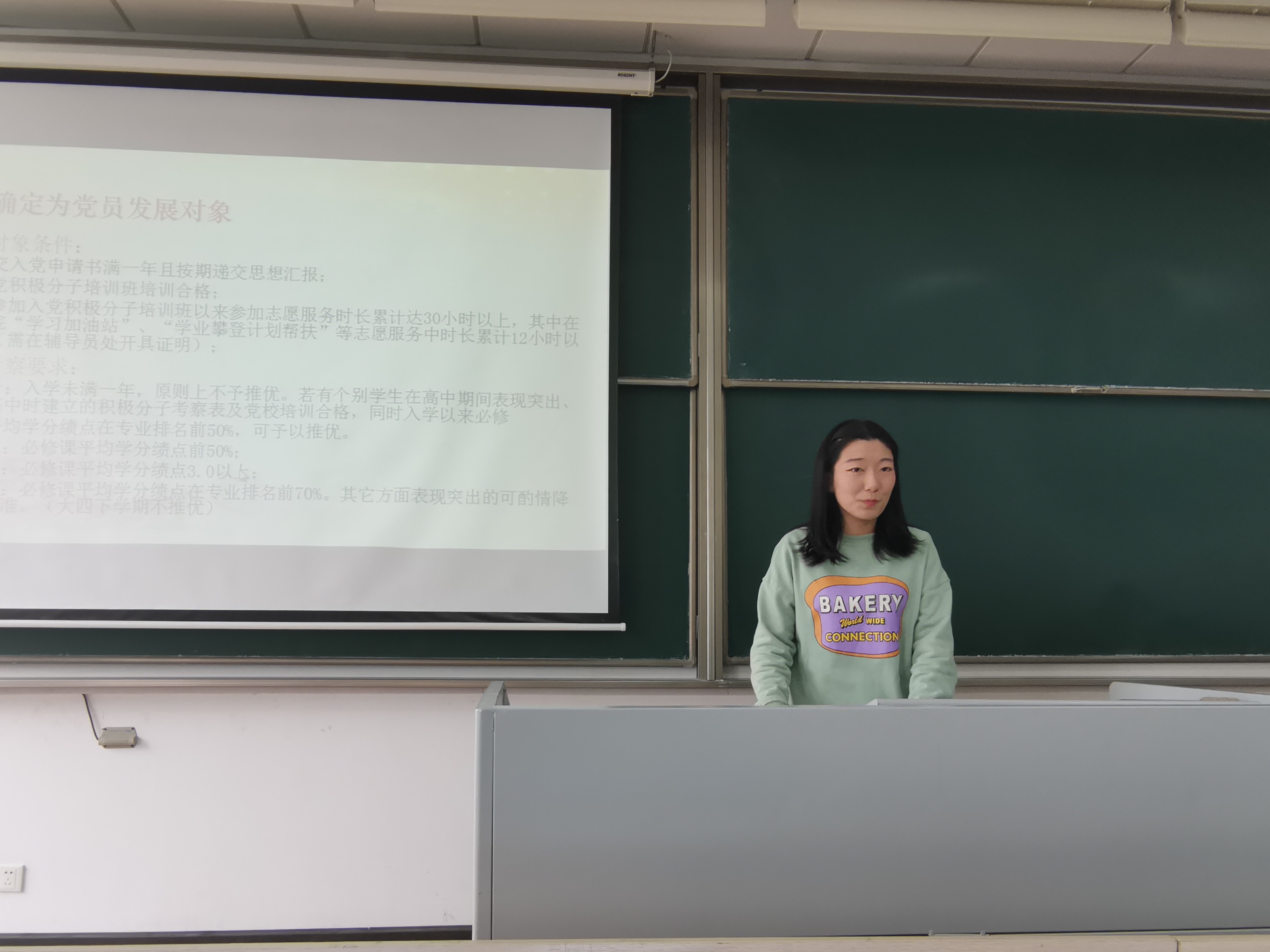10月25日中午,dg百家乐在线试玩平台 在D1410教室顺利开展关于“党员发展流程”的专题分享会。2019级递交入党申请书的全体学生、其他年级对入党环节有困惑的同学参与,主讲人为本科生联合党支部宣传委员吴晨郡。
