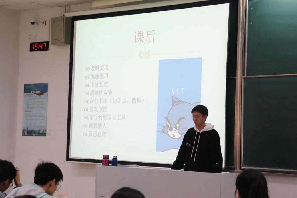 随后,针对高数学习中的共性问题,年级中心组学习部部长韩鹏进行了学习经验分享,与大家共同探讨高数学习方法以及如何合理规划学习时间。为了更好地解决高数学困问题,2019级年级中心组联合dg百家乐试玩 青协组建了高数期末考试冲刺班,由高数成绩优异的学生担任“教员”,每周进行集中高数辅导,在全院营造“你追我赶,你帮我带”的浓厚学习氛围。