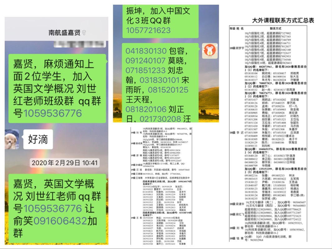 大学英语本学期开设基础必修课2门94个班,涉及近3400名学生;后续选修课20门,173个班,涉及近7000名学生;辅修课2门,3个班,涉及100左右人次;民族班及民族预科班英语3门,3个班,近200名学生。为了确保所有学生在开课前加入任课老师的班级联系群,除了学习通通知、直接通知老生等方式,教学部还联系教师系统整理汇总了班级群联系方式,委托本院辅导员通知各个dg百家乐试玩 辅导员,请学生及时加入班级联系群,经过繁琐的合作,所有课程在开课前均联系上了所有学生。