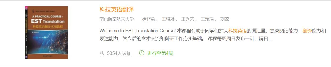科技英语翻译作为最早开设的后续选修课之一,于2019年9月成功立项江苏省在线开放课程,已在大学慕课(www.icourses.cn)平台上线。疫情期间,该课程也作为SPOC对本校学生开放。