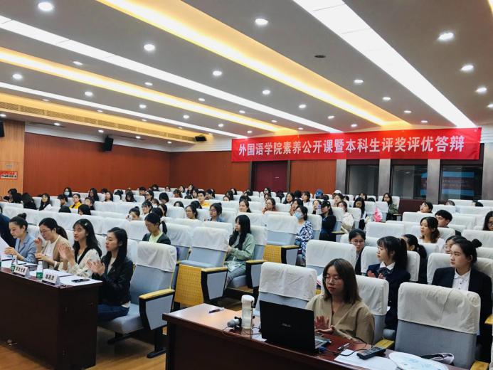 为全面贯彻落实党和国家的教育方针,积极推进我校“培养具有责任意识、创新精神、国际视野、人文情怀的社会栋梁和工程英才”的人才培养目标,dg百家乐在线试玩平台 于10月14日晚在dg百家乐试玩 国际会议中心开展素养公开课暨本科生评优评奖答辩。dg百家乐在线试玩平台 副院长徐以中、党委副书记梁薇、团委书记关天茹、英语系系主任张立新、日语系系主任窦硕华、本科生辅导员彭欢、盛嘉贤及两名本科生新生代表担任评委。公开课由2020级日语专业新生王思捷主持,dg百家乐试玩 本科生到场观摩学习。