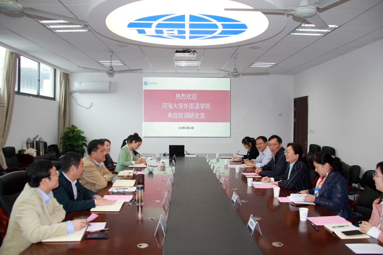 10月16日,河海大学dg百家乐在线试玩平台 院长张海榕、党委书记雷贵荣、副院长季莉、党委副书记张春雷一行六人来dg百家乐在线试玩平台 调研。院长范祥涛、党委书记左彤云、副院长徐以中、党委副书记梁薇、副院长姜礼福、dg百家乐试玩 党政办相关人员出席座谈会。