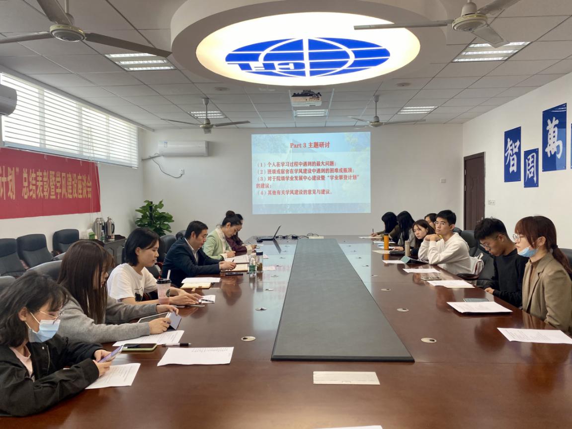 随后,与会领导、老师和学生代表们围绕“个人在学习过程中遇到的最大问题”、“班级或宿舍在学风建设中遇到的困难或瓶颈”、“对于院级学业发展中心建设暨‘学业攀登计划’的建议”、“其他有关学风建设的意见与建议”四个主题进行探讨。学生代表们踊跃发言,结合自己学习生活实际,就如何自律、如何寻找努力方向、如何增强班级学风建设、专业课程设置等方面建言献策。与会领导、老师认真听取了学生代表的发言并做了记录,就共性、突出问题与学生代表们进行了讨论交流。