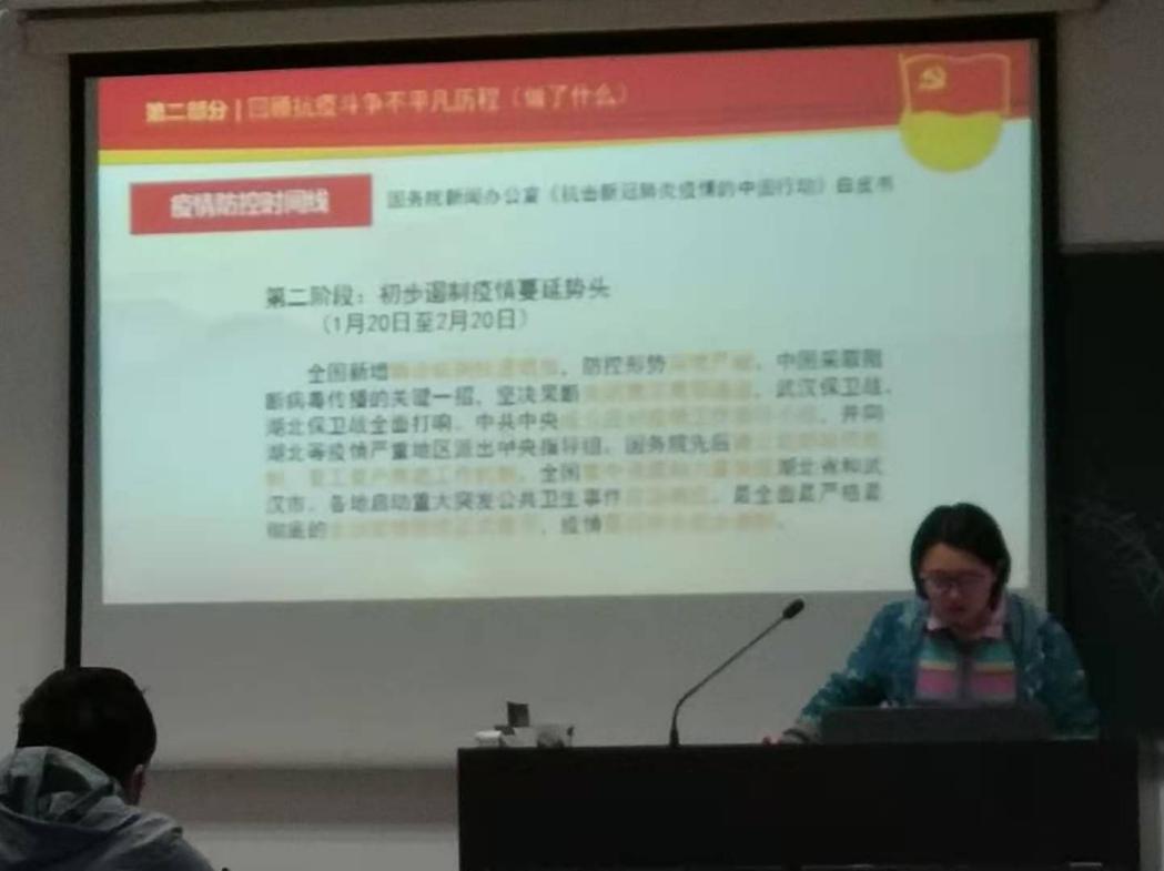 11月26日下午,dg百家乐在线试玩平台 本科生联合党支部在dg百家乐试玩 111教室开展了“在全国抗击新冠肺炎疫情表彰大会上的讲话”党内主题学习。