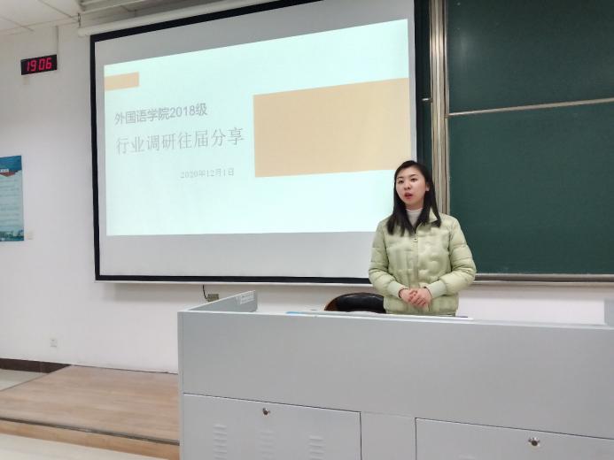 此次行业调研往届经验分享年级会得到了同学们的一致好评,给2018级同学接下来开展行业调研工作提供了范本和方向。dg百家乐在线试玩平台 历来高度重视学生的就业指导工作及职业生涯规划,持续关注学生意向动态,本次行业调研活动有助于帮助外院学子进行自我定位,指导学生科学开展生涯规划。
