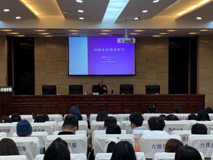 为帮助新生适应大学,在期末考试来临之际,吴鼎民有针对性地开展《与新生谈语言学习》主题讲座,从dg百家乐在线试玩平台 发展简史、学习方法与策略以及未来的展望三个方面作精彩分享。