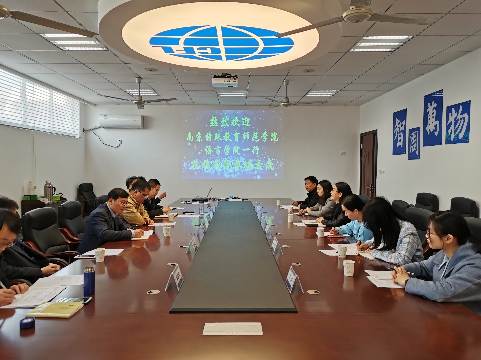 4月9日,南京特殊教育师范dg百家乐试玩 语言dg百家乐试玩 副院长徐琴芳、汤傅佳及dg百家乐试玩 教师代表等一行六人来dg百家乐在线试玩平台 调研。院长范祥涛、副院长徐以中、姜礼福以及系部相关教师参加了此次交流活动。