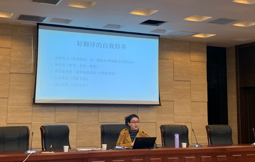 4月15日下午,中国翻译协会口译委员会副秘书长洪晔莅临我校dg百家乐在线试玩平台 ,带来了主题为“我翻故我在——论一个好翻译的自我修养”的精彩讲座。洪晔老师多次担任“21世纪杯”全国英语演讲比赛决赛圈评委、“外研社杯”全国英语辩论大赛评委,曾受训于翻译“国家队”——外交部翻译司,多次在大型外交活动中担任英文口译,拥有丰富的口译经验。