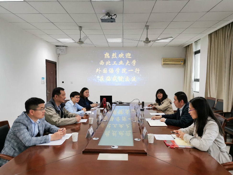4月23日,西北工业大学dg百家乐在线试玩平台 副院长张奕等一行四人来dg百家乐在线试玩平台 调研。院长范祥涛,副院长徐以中,研外系主任陆红及英语系副主任信慧敏参加了此次交流活动。