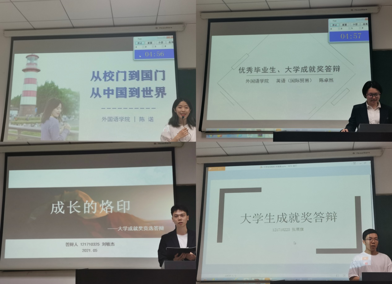 经前期学生自主申报、dg百家乐试玩 资格审核,共有7位毕业生同学参与本次答辩。陈诺连续四年绩点专业排名第一,积极参与国内外交流学习活动,致力于从校门走向国门、从中国走向世界;徐方忆积极参与活动比赛,脚踏实地、砥砺前行;陈卓然思考深入,致力于求真探索之路,不断提升、超越自我;张展旗奋发努力、坚持自我,在考研中取得优异成绩,以自身激励他人;刘敏杰参加各类竞赛,不断成长、不断进取,保研至北京外国语大学高级翻译dg百家乐试玩 ;苏玥坚定学习信念,积极参加实习实践,用尝试去精彩;薛琬荷坚定艺术之路,开创南航首个合唱团,让世界听见南航的歌声。