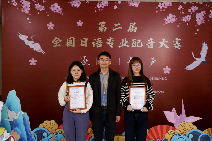 日语系大二学生金一宁和张晓行在第二届“全国日语配音大赛”动漫组决赛上奋力拼搏,表现优异,荣获二等奖。