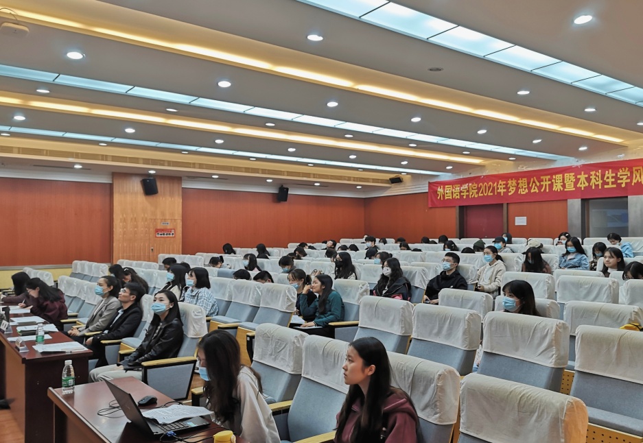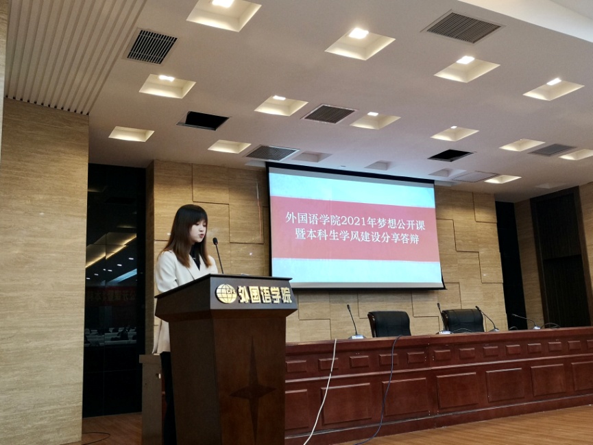 11月5日,dg百家乐在线试玩平台 梦想公开课暨本科生学风建设分享答辩在dg百家乐试玩 国际会议中心举行。参加本次分享答辩的有dg百家乐试玩 党委副书记梁薇、日语系副主任钟勇、英语系教师姜上、本科生辅导员彭欢、盛嘉贤和各年级学生代表。