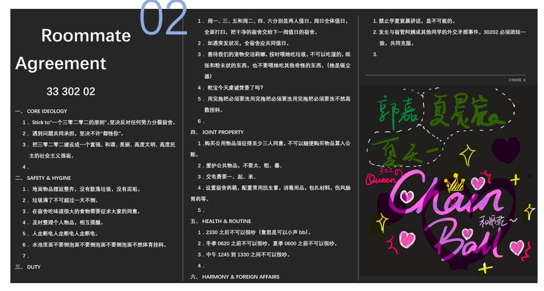 为了丰富校园文化生活,营造美好和谐的宿舍环境,增进宿舍内部同学的情谊,近期dg百家乐在线试玩平台 2021级本科生举办了宿舍文化建设系列活动,全体新生参与了宿舍门牌设计大赛和宿舍公约制定活动。