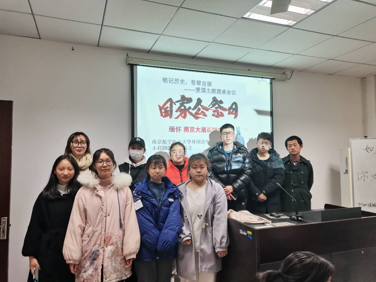 为了缅怀在南京大屠杀中遇难的同胞,唤起青年学子的爱国爱党意识,明确在新时代背景下的使命与责任,12月12日,dg百家乐在线试玩平台 2021级团总支开展了“铭记历史,吾辈自强——爱国主题圆桌会议”团日活动。本次团日活动以团支部为单位,分为两个会场同时进行,一会场由徐玙晗、易邦妮主持,二会场由陈妍莅、刘可主持,全体支部团员参加本次活动。