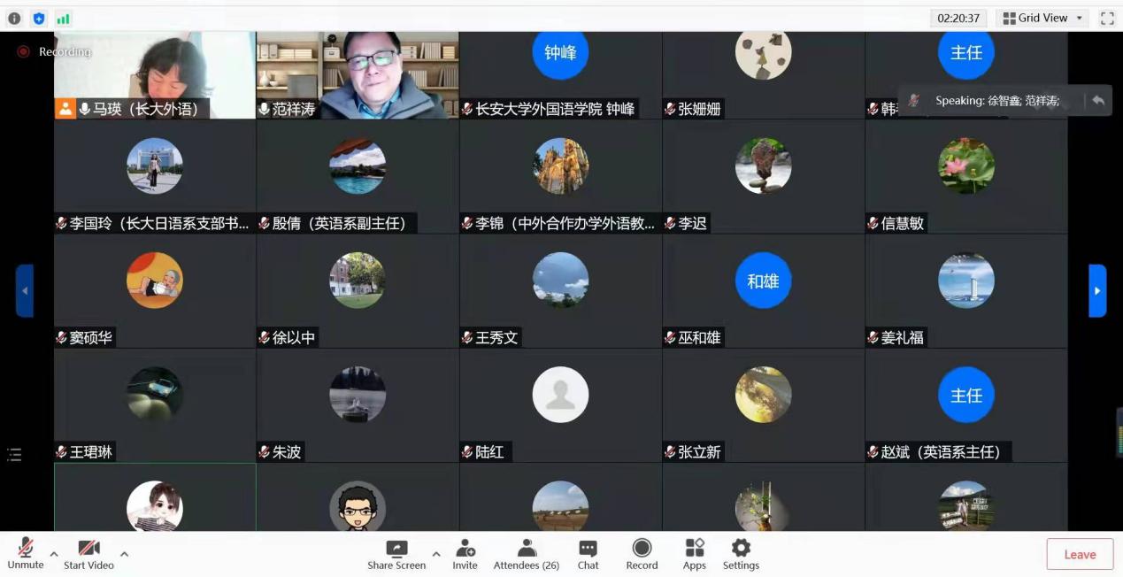 本次会议由徐以中副院长和长安大学dg百家乐在线试玩平台 马瑛副院长联合主持,会议围绕外语新文科建设的总体目标、课程体系、专业方向等展开讨论,对授课内容、教材、方法提出具体方案,探讨了交叉学科建设亟待解决的教师发展和人才培养等问题。