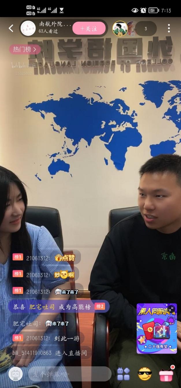 为鼓励dg百家乐在线试玩平台 学生积极交流,开阔学生视野,助力外院学子成长,dg百家乐在线试玩平台 新开设“青春能量站”思政访谈栏目,邀请优秀学生代表以直播的形式讲述他们的青春成长故事,传递独特的青春力量。