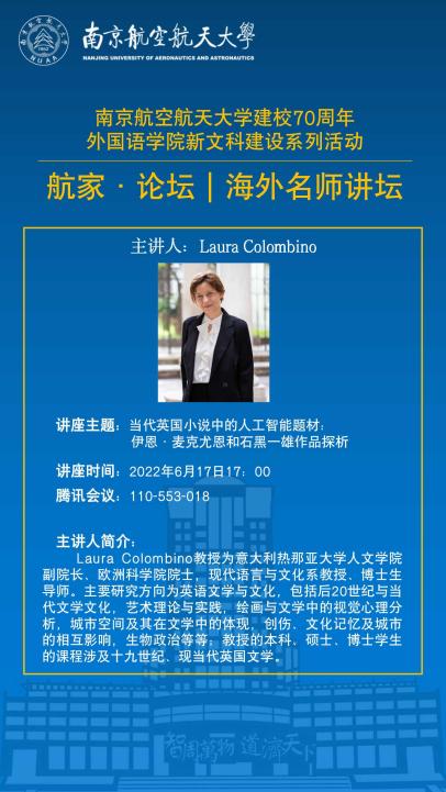 院士、意大利热那亚大学Laura Colombino教授通过线上平台腾讯会议为我校师生主讲了一场讲座,主题为《当代英国小说中的人工智能题材:伊恩·麦克尤恩和石黑一雄》。dg百家乐在线试玩平台