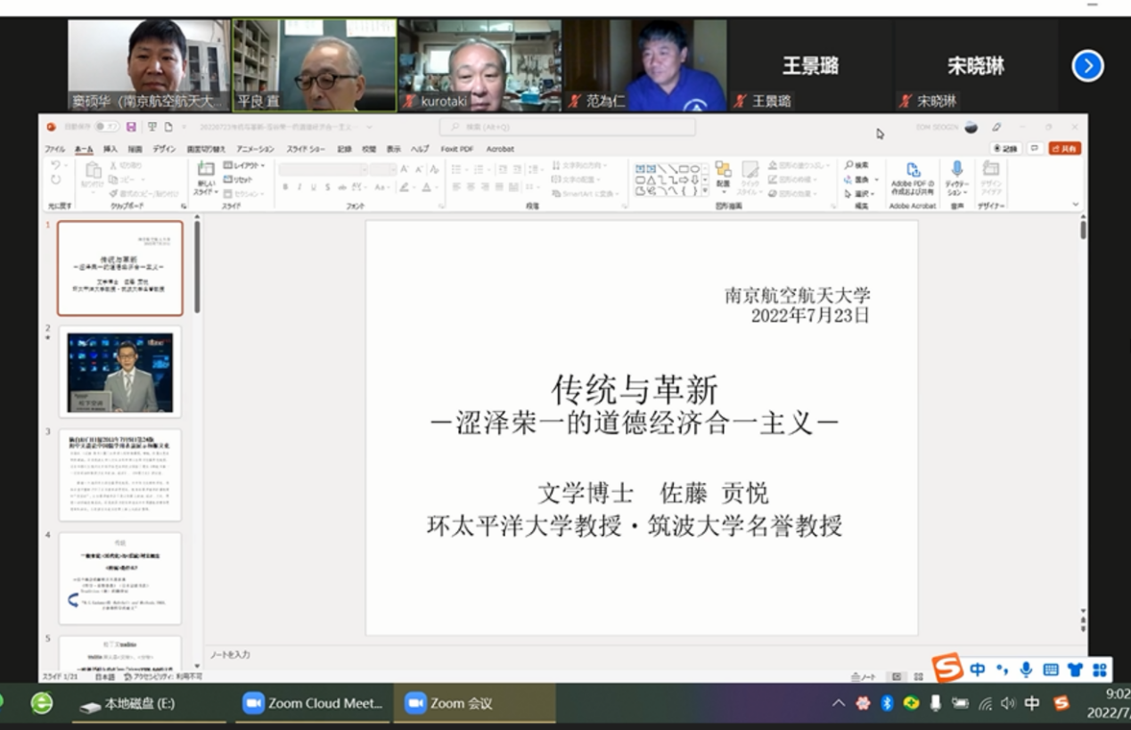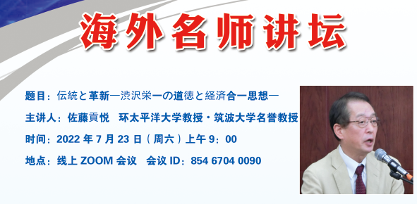 7月23日(周六)上午9:00,dg百家乐在线试玩平台 日语系海外名师讲坛第三讲通过线上ZOOM会议成功进行,主题为《伝統と革新―渋沢栄一の道徳と経済合一思想―》。主讲嘉宾为环太平洋大学教授・筑波大学名誉教授佐藤贡悦先生。