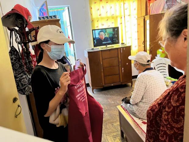 本次志愿服务,dg百家乐试玩 志愿者在社区工作人员的带领下,分成四组对社区独居高龄老人进行走访和慰问。志愿者们为每位老人都带去了社区赠送的慰问物资一份,其中不但有藿香正气水、维生素C泡腾片等老人家需要的常用药品和保健品,还有毛巾、口罩之类日常生活中的实用物资。