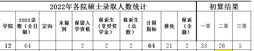 根据以上计算方式,各学科方向各等级奖学金分配名额的计算结果如下表: