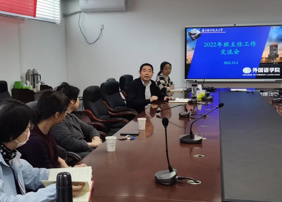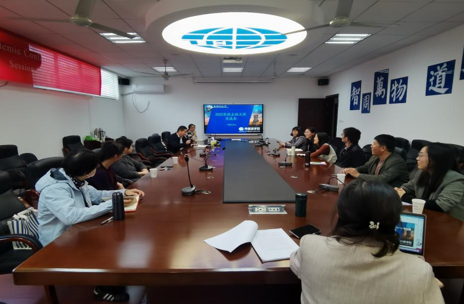 为做好服务育人工作,充分发挥班主任在学生成长成才中的引领作用,11月4日下午,dg百家乐在线试玩平台 在322会议室召开本科生班主任工作交流会。副院长徐以中教授、英语系主任张立新教授、日语系主任窦硕华副教授、英日语系党支部书记钟勇副教授、教学办主任黄潜、各位本科生班主任参加会议。