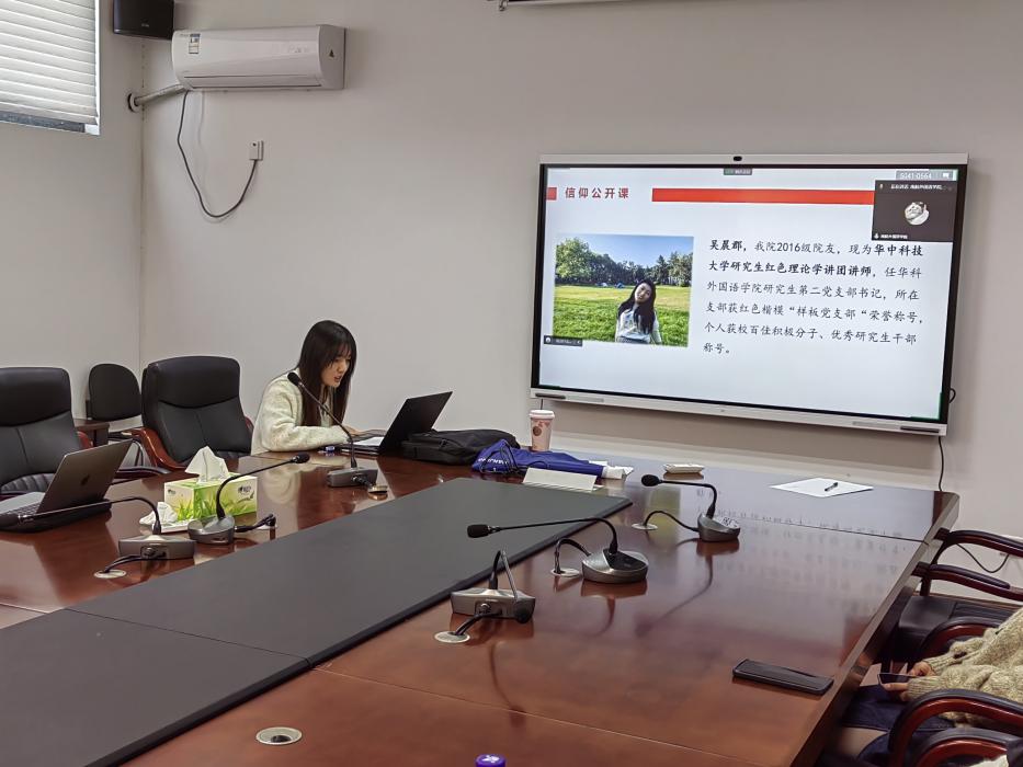 为深入学习贯彻党的二十大精神,11月15日,dg百家乐在线试玩平台 团委与华中科技大学红色理论学讲团开展联学共建,邀请学讲团讲师吴晨郡主讲信仰公开课,公开课由dg百家乐试玩 2021级学硕研究生团支部书记言声远主持,dg百家乐试玩 2020级、2021级研究生团支部参与。