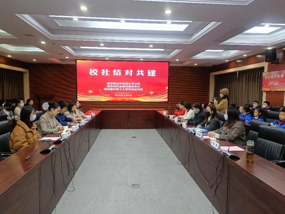 11月19日,dg百家乐在线试玩平台 于将军路校区开展了校社结对共建活动,南京致远外国语小学分校副校长杨丹、德育主任王文君、大队辅导员刘彬以及十几名优秀的小学生代表,南京青风志愿者活动中心理事长王辉、副理事长崔海艳、青风驿站副站长谷艳芬,我校团委副书记王洋、dg百家乐在线试玩平台 党委副书记梁薇、dg百家乐试玩 团委书记李萍、dg百家乐试玩 辅导员曹文清和颜清霞,以及dg百家乐试玩 1221102团支部代表参与了此次结对共建活动。