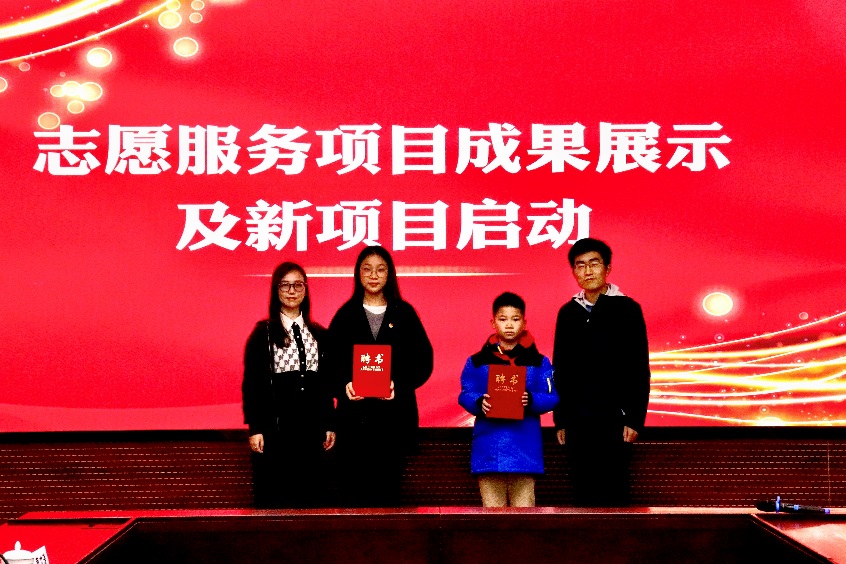 杨丹、王洋为“梦想演说家,大手拉小手”项目第二期参与学生代表及志愿者代表颁发聘书。