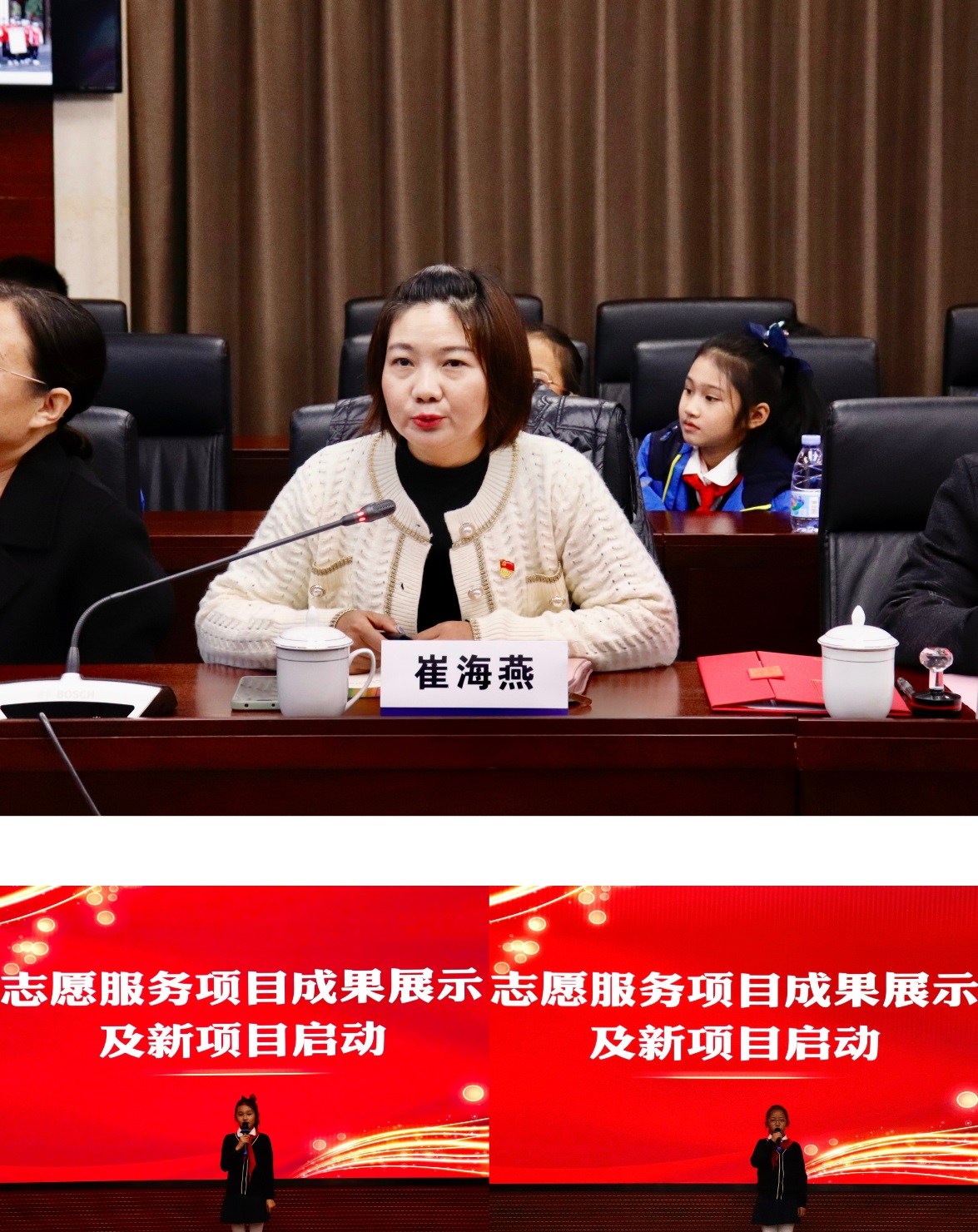 协议成功签署后,崔海艳介绍了前期已合作开展的“梦想演说家,大手拉小手”、“小小讲解员”公益志愿服务项目,两位参与前期活动的优秀小学生代表上台展示,收获了现场一致好评和热烈掌声。