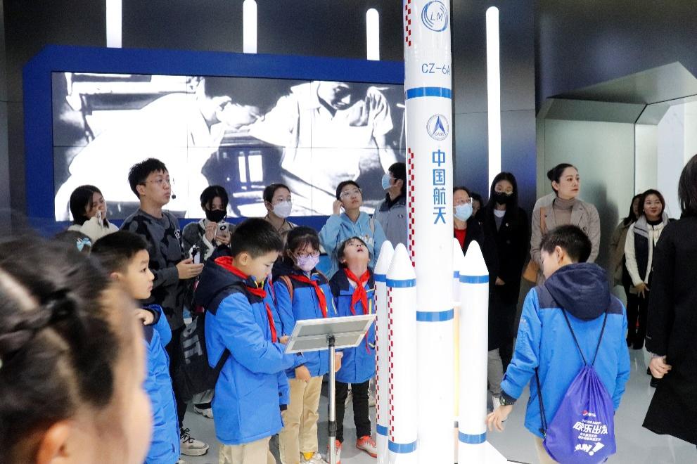 共建交流结束后,与会人员前往南航御风园及航天教育教学基地参观。在讲解员全面生动的解说下,小朋友们对于航空航天知识的好奇心不断增强,学习热情高涨,并与讲解员积极交流互动。