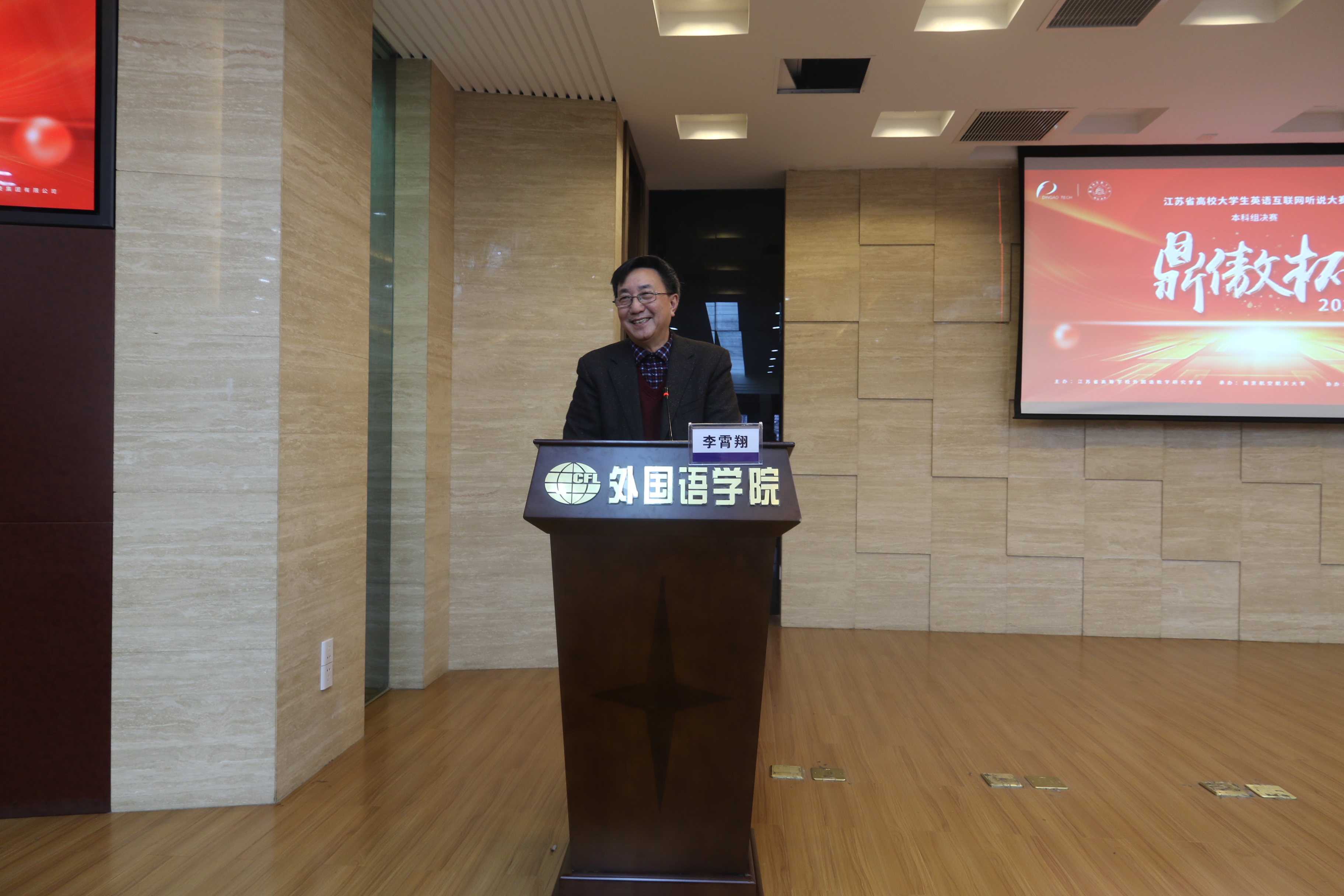 江苏省高等学校外国语教学研究会常务副会长李霄翔、南京航空航天大学教务处处长孔垂谦、江苏鼎傲教育科技集团有限公司董事长徐晖、江苏省各高校dg百家乐在线试玩平台 院长、教授参加了开幕式并担任本次决赛评委。开幕式由dg百家乐试玩-百家乐在线试玩平台. 副院长徐以中教授主持。
