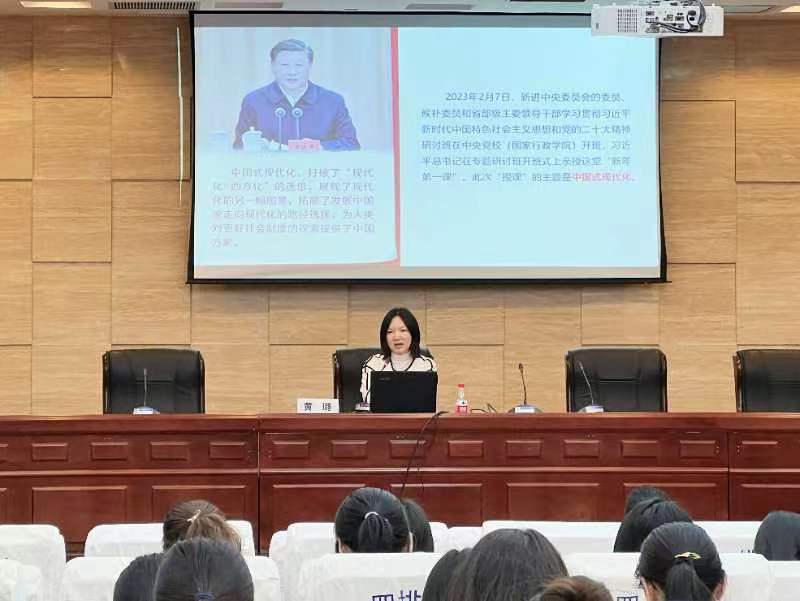 3月10日,dg百家乐在线试玩平台 联合人文与社会科学dg百家乐试玩 、艺术dg百家乐试玩 在外院国际会议中心开展 “青马工程”第三讲——《以中国式现代化全面推进中华民族伟大复兴》,来自马克思主义dg百家乐试玩 的青年优秀教师黄璐为三个dg百家乐试玩 “青马工程”培训班的学员们带来了一堂精彩的授课。