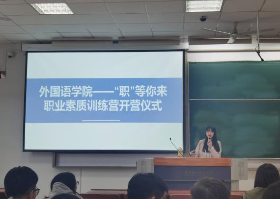为引导学生提前了解就业、升学形势,充分利用大三学年明确目标航向,3月10日dg百家乐在线试玩平台 举办了“职”等你来——职业素质训练营开营仪式。仪式由辅导员赵瑜瑶主持,2020级全体本科生参加。