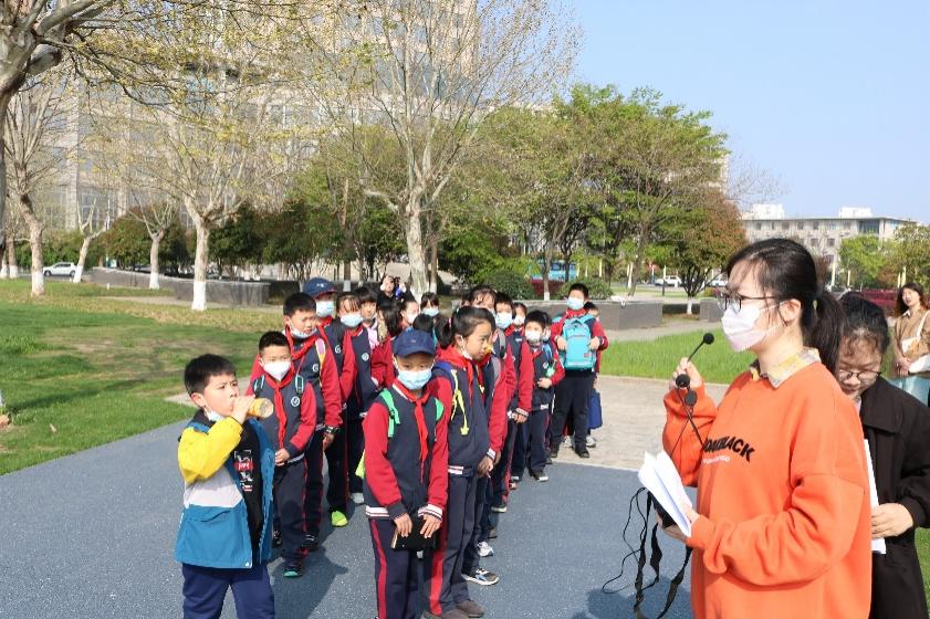 4月1日,dg百家乐在线试玩平台 S2022级研究生学硕团支部与南京青风志愿者服务中心、滨江外国语小学联合开展研学活动,滨江外国语学校四年级部分学生代表来我校御风园参观。