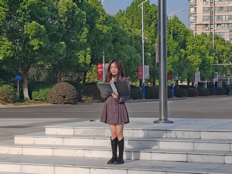 以青春之我,谱写奋斗之歌。江苏省优秀共青团员苏露从蓄底气、强志气、接地气三个方面作国旗下主题分享,她结合自身的学习经验指出,外语专业和非外语专业的主要不同在于异国文化的积淀以及国际视野的培养,她号召低年级的学弟学妹们多读外文原著,多了解国际时事热点,培养思辨能力和对外交流能力,形成独特的竞争力;同时,她鼓励同学们勇于试错,面向实际深入实践,将课堂学习和实践紧密结合起来,积极加入Mr.China暑期社会实践团队,成为通晓国际规则、接轨世界潮流、服务国家战略的复合型人才。