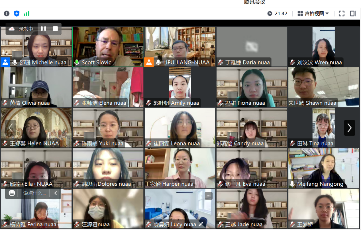 本年度大师引航课是继2022年度生态批评八讲,Slovic教授为南航dg百家乐在线试玩平台 开展第二轮线上系列讲座,是dg百家乐在线试玩平台 借助学科方向学术大师推进研究生教育教学改革、提升课程品质、深化国际学术交流的新探索,受到学生的普遍欢迎。