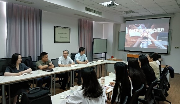 在东航江苏公司,调研团队聚焦客舱英语广播能力提升,与东航江苏公司培训中心总经理胡平、客舱服务部副总经理朱如清以及分部培训经理、培训团队负责人和英语教员深入进行了研讨。交流会由东航江苏公司培训中心总经理胡平主持。