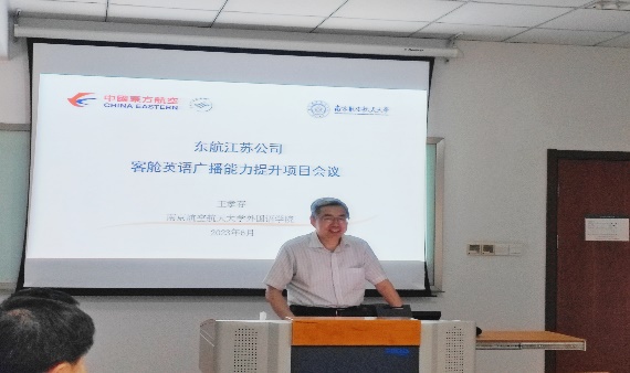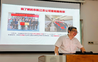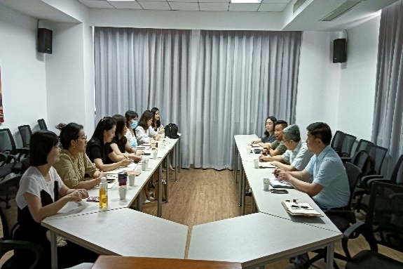 首先,王孝存介绍了2021年与东航北京分公司服务与质量管理部合作开展客舱英语广播“伴学辅导”的背景、相关举措以及《客舱服务场景话术手册》的产教合作英译,并提出与东航江苏公司培训中心及客舱服务部的产教融合、科教融汇的路径设想。然后,客舱服务部副总经理朱如清对于“伴学辅导”模式给予高度评价,结合客舱服务部今年的工作重点提出合作的方向。最后,各分部培训经理、培训团队负责人和英语教员基于客舱服务相关工作的实际,分享了已经作出的努力,及需要进一步探索的领域,并表达了对于双方合作的期待。
