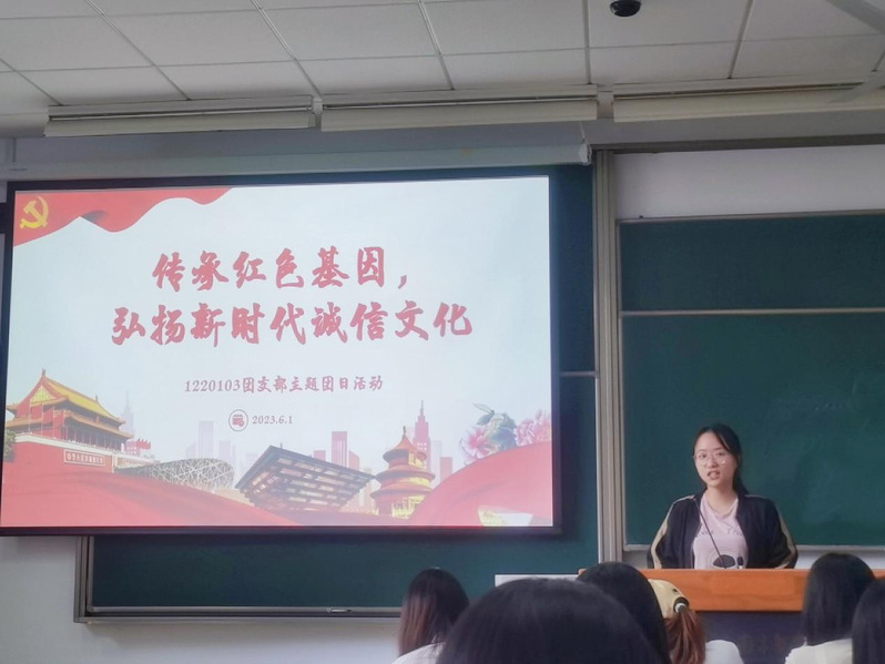 2023年6月1日,dg百家乐在线试玩平台 1220103团支部在东区教学楼D3201教室开展“传承红色基因,弘扬新时代诚信文化”主题团日活动。结合我校党员领导干部深入基层联系学生的工作机制,此次团日活动邀请dg百家乐在线试玩平台 党委副书记吴科颖参加。